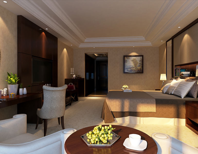 工程說明:此酒店的設計中,根據不同區域的功能而進行分區設計。例如酒店客房的設計中,溫暖舒適,給人賓至如歸之感。整個設計將實用和唯美的理念相融合。