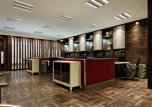 此外,財務區辦公室裝修更應該與時俱進,把更多現代化的科技元素融入當中,裝修的格調非常嚴謹細致,這個財務區辦公室裝修既有古典風格的高雅,又有現代風格的婉約,把財務人的正面的工作形象描繪得栩栩如生。
