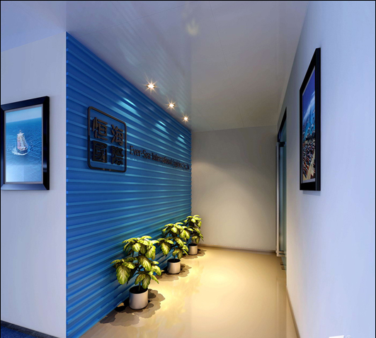 這種風(fēng)格的裝飾塑造的是一個寧靜優(yōu)雅的辦公的優(yōu)良環(huán)境,這個公司辦公室裝飾,它的前臺區(qū)采用了藍(lán)色的背景墻,對于辦公區(qū)的裝飾主要采用了海洋的藍(lán)色和純潔的白色,藍(lán)色象征海洋,常常通過海洋運(yùn)輸?shù)拿浇榉绞絹硗瓿缮唐返慕粨Q,簡設(shè)計(jì)師給它注入了更多的活力。