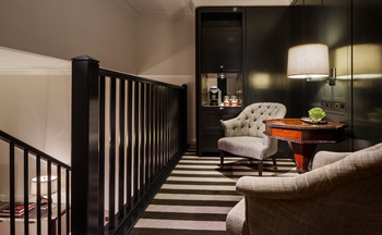 北京飯店設計專家特別指出在商務酒店裝修設計工作區,首先就是以書寫臺為中心。而且家具設計成為這個區域的靈魂。那些相對比較強大而完善的商務功能于此處體現出來。尤其是還有寬帶、傳真、電話以及各種插口要一一安排整齊,那些比較雜亂的電線也要收納干凈。書寫臺位置的安排也應依空間仔細考慮,這個角度是需要良好的采光與視線并且是很重要的。當然這個時候你不一定要象過去的客房那樣面壁而坐了。